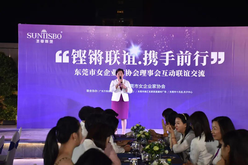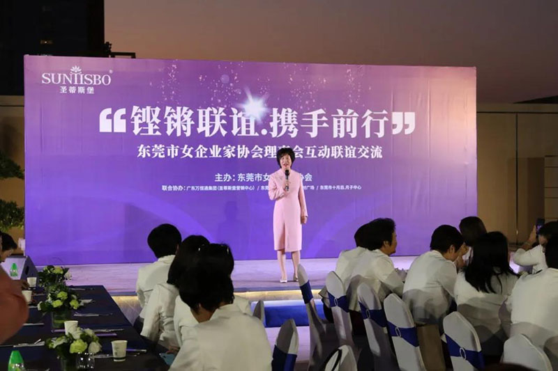 接下来,东莞市女企业家协会理事会会长叶小红女士上台发言,她表示非常感谢333体育集团集团举办此次联谊交流会,同时,对我们的产品和企业文化给出了很高的评价。她号召东莞市女企业家协会以后要更多的举办此类交流联谊活动,以此增进会员企业之间的联系和了解,为未来进一步交流发展开创新局面!她希望我们能携手同行,强强联手,共赢未来,共创新辉煌!