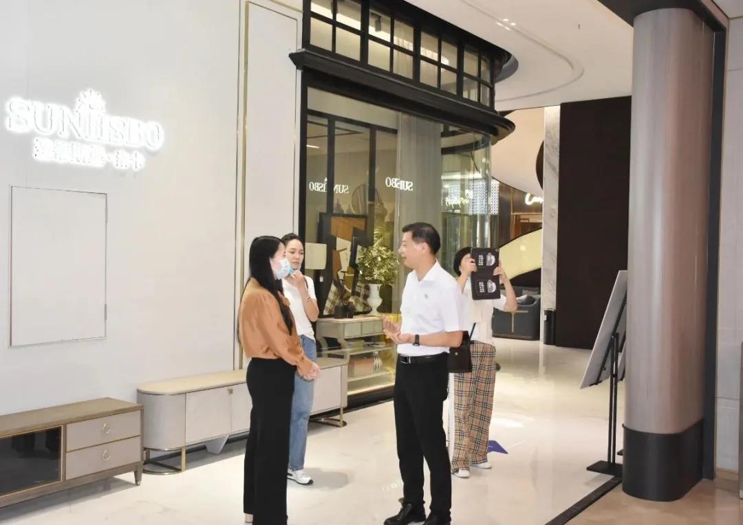 展会期间,全国家居建材连锁巨头—红星美凯龙集团郑总一行莅临圣蒂斯堡营销中心进行参观交流。集团领导热情接待,双方进行了深度洽谈,并一起参观了洛斯、里奥、洛卡等展厅。